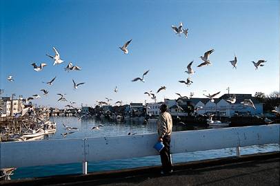 カモメに毎日、餌づけする人も…。