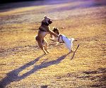 夕陽をバックに、犬の動きもいいし、絶妙なシャッターチャンスなのですが、ピントが合っていないのが惜しい作品です。