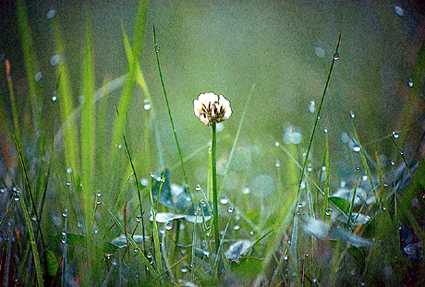雨上がりにカメラを持って家のまわりをよく歩きます。これはその時に撮った一枚。雨の滴が幻想的に見せてくれます。