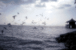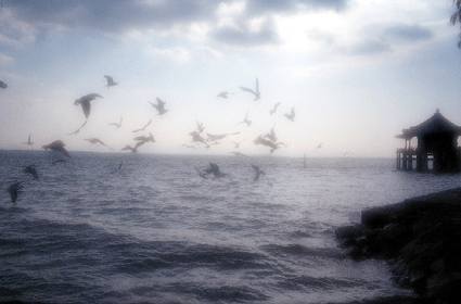 琵琶湖。鳥の飛翔とソフトレンズとを組み合わせてみました。餌を与えると鳥はいくらでも飛んでくるので、焦らずシャッターチャンスが狙えます。