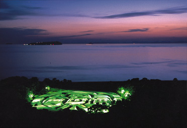 『銭形』砂浜に彫りあげられた巨大な寛永通寶。