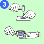 一度で開けてしまおうと思わずに、ルーペで確認しながら、すこしづつ、正円の形を整えながら開けるようにするのが、失敗の少ないピンホールの作り方です。