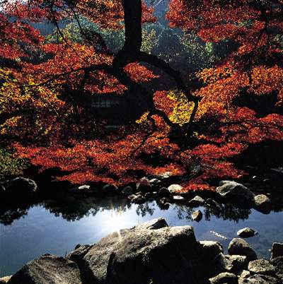 (1)凉井 広美様 (2)愛知県東加茂郡足助町 香嵐渓 東海自然歩道香嵐橋先の「もみじのトンネル」から撮影 (3)11月中〜下旬、午前7〜10時 (4)風情ある香嵐橋、茅葺き野茶屋が撮影ポイント。早朝の逆光に映える紅葉を捉えたい。(5)名鉄名古屋本線東岡崎駅→名鉄バスで約70分香嵐渓下車→徒歩15分