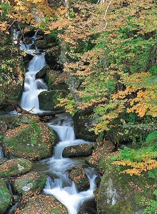 | 紅葉と滝とはなかなか相性がいい。この頃は、水量が落ちるが落ちついた滝風景が撮れる。 ■カメラ:ペンタックス645N レンズ:SMCペンタックス645 80-160mm F4.5 絞り:f22 AE フィルム:RVP 三脚使用 撮影地:群馬県水上町 |
