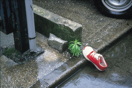 片方だけ置き去られていた靴。もう片方はどうしたのだろう? いろいろとストーリーが思い浮かぶ。(深川)