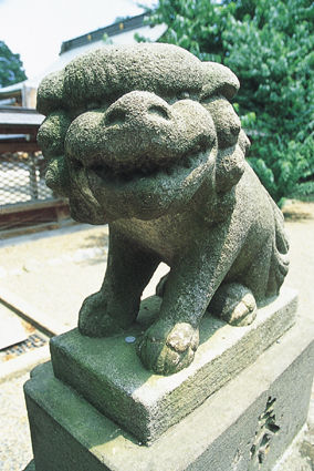 頭でっかちの狛犬に出会ったのでパチリ。本当は怖いはずの狛犬でも、好ましいヤツもいる。(小山市)