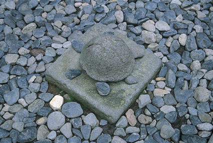 観光客が砂利を使って手足や首をつけ、勝手に亀にしてしまった。他にもいくつかあったけれど、これは中でも保存状態(?)がよく、完全体で残っていた。(日光東照宮)