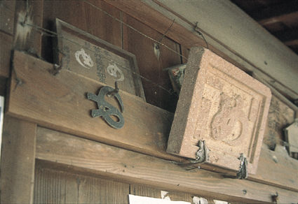 目の病に効くので絵馬に「め」と書いて奉納する神社。中には鋳物や石で「め」と作ってある凝ったものもある。(今市)