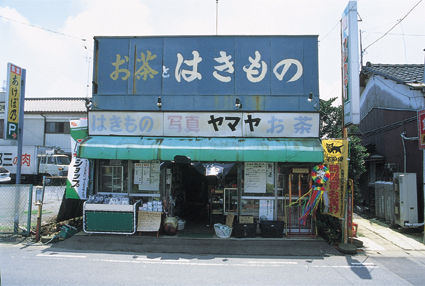 地方によってはよく見かけるモノ、またその地域では不思議でも何でもない。けれど別な地域から訪れた人からすると不思議に思えたり、面白く見えたりするモノも多いんです。たとえば看板ですが、間々田で見つけた「お茶とはきもの」という変な看板は、地方に行くと時々見かけます。前に「魚と宝石」というのもありました。おそらく魚屋さんの息子さんが魚屋さんが嫌で、宝石屋さんをはじめてしまったのではないかと思います。だから一つのお店で魚と宝石を売っている。このお店でも、お茶と、はきものを売っているわけですが、「と」が小さく書かれているところからすると、最初は「お茶はきもの」だったのかもしれませんね。だけど、それでは「お茶は着物」と読めてしまう。そのことに後から気がついて、小さく「と」を入れたのではないでしょうか。もちろん、これは私の勝手な想像ですけど。