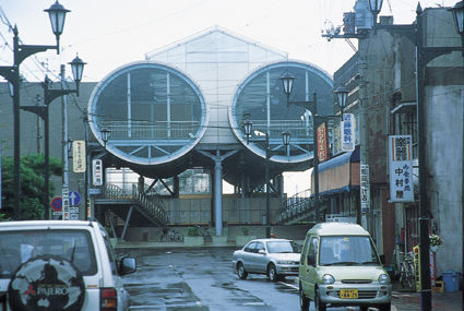 斬新なデザインの駅。大きなハエか蚊がチューチューと地中の汁を吸っているように見える。(矢吹町)