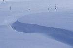 フラットな雪原でもわずかな凹凸があれば太陽の角度によって影ができる。帯のように横切る影のラインをメインに、極力シンプルに画面構成する。