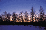 落葉松林を前景にして20ミリの超広角で狙った夕焼け。
