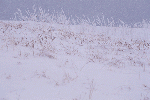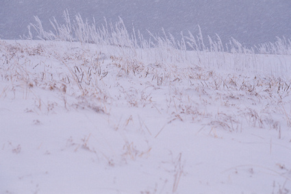 降雪シーンは背景に溶け込みやすいため、写っていても分かりにくい光景だ。この作品は横なぐりの吹雪の様子をシンプルなバックに反映させた。絞りを開け気味にして1/60秒で捉えた。