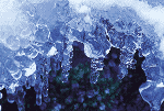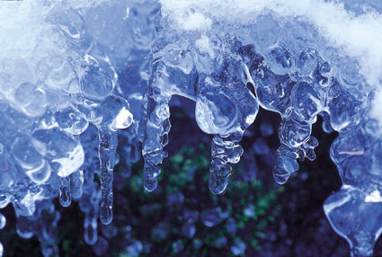 氷の作る造形は一つとして同じものがない。これは沢の水が落下しながらできたもので、マクロレンズでクローズアップした。クリスタルな透明感を表現するためにマイナス補正している。