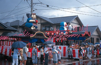 白河では祭りに出逢った。ドラエモンを飾っている。祭りも進化(?)しているのだ。(白河)