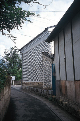 桑折では見事なナマコ塀を発見。ここは今でも人が住み、生活している。(桑折)