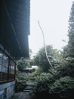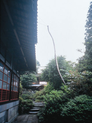 雨樋が屋根からはずれて立っている。雨粒たちは、どうやって雨樋に飛び移るのだろう?(日光)