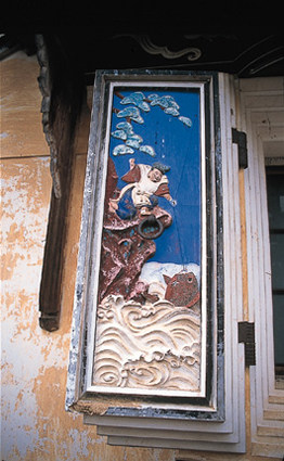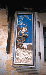 戸袋に漆喰で見事な装飾がなされている。山形の「戸袋文化」は山形県特有のもの。(尾花沢・村山)
