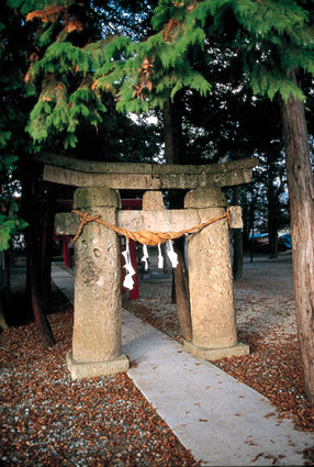 ちょっと太ってずんぐりとした、どことなく、かわいらしい鳥居。山形県には、こうした鳥居が多く見られる。(東根)