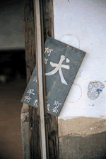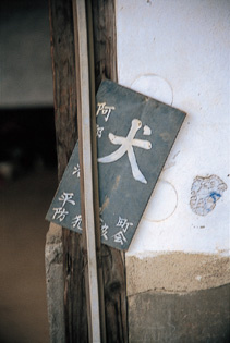 「犬」と書かれた紙が戸に挟まれて顔を出している。本物の犬が顔を出しているところが想像できて面白い。(平泉)