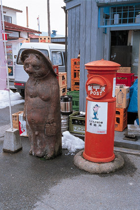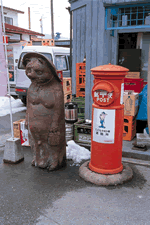 郵便ポストにうまく化けられたタヌキと化けられなかったタヌキ。うまく化けられたのはお母さんのタヌキで、体の大きな息子の方は、うまく化けられずに人間に見抜かれてしまう。そんな楽しい想像をさせてくれる。(東根)