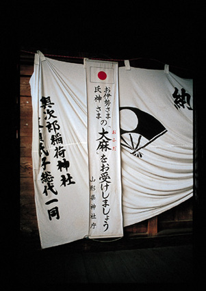 お伊勢様が大麻をくれる? 神社のお札のことを「大麻」ともいう。マリファナと間違えられては困るためだろう、「おふだ」という添え書きがあった。(東根)