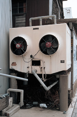 誰でも子どもの頃に、何かが怪獣や恐竜に見えた記憶があるのではなかろうか。私には換気扇が昆虫の顔のように見えた。(酒田)