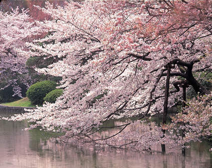 | 重そうに花をつけた枝が水面にはり出している。うんとアングルを下げて、水面に映り込んだところをねらった。 ■カメラ:リンホフマスターテヒニカ4×5 レンズ:400mm 絞り:f321/2 シャッタースピード:1秒 フィルム:RDP・ 撮影地:東京都新宿御苑 |