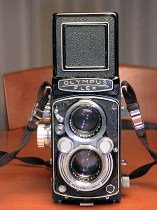 戦後のごく初期の、国産二眼レフには、ドイツのローライを越えようという意気込みがあった。オリンパスフレックスは、その代表的存在で、他のメーカーの二眼レフが、4枚構成のテッサータイプを基本にしていたのに対して、6枚構成のFズイコーを採用した。レンズのバヨネットマウントや、絞りとシャッターのダイヤルも仕上げが良い。ただし、セルフコッキングではなく、いちいち、シャッターをセットする必要があった。