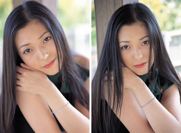 〈左〉割と明るい日陰、ポートレートを撮るためには理想的な条件だ。絞ることでピントはより引き締まりシャープな描写になった。F1,4のレンズだからといって必ず絞り開放で撮る必要はないのだ。レンズ性能を発揮させるためには少し絞ることがベストなのだ。そのためにF1.4の余裕があると考えるのが正しい。