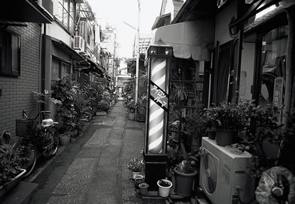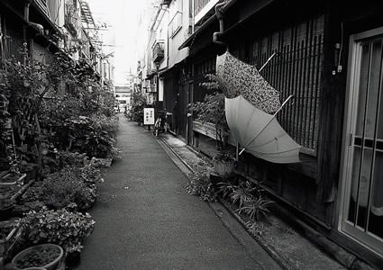 ただ、まったく興味がないというわけではありません。最近は東京の月島をよく撮っています。月島には古い街並みがところどころに残っていて、そうした懐かしい路地裏などを記録しておきたいと思って撮っています。昔の東京の下町っぽさを出すために、モノクロのポジフィルムを使っています。 |