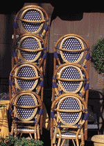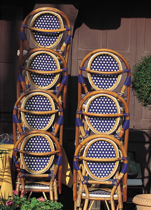 オンフルールのカフェにて。片づけた椅子を美しく並べていた。
