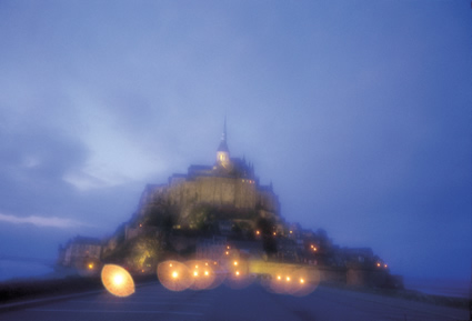 名高いモン・サン・ミシェル。ソフトフォーカスレンズで光を強調し、幻想的に撮ってみた。