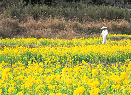 菜の花は露出が難しい。少し明るめに撮らないと花が濁ってしまう。次々と歩いてくるお遍路さんを、1/15秒位で少しブラしてみた。