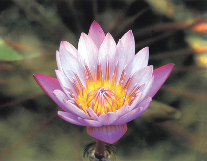 池に咲いたスイレンを上から撮った。日影の暗い場所なのに美しく撮れて驚いた。