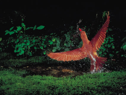 | アカショウビン ■カメラ:キヤノンF1 レンズ:FD80-200mmF4L 絞り:f8 シャッタースピード:1/60秒 フィルム:フジクロームRDP ストロボ使用 撮影地:北海道 |