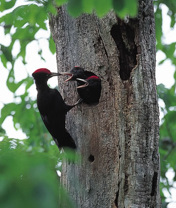 | クマゲラ ■カメラ:キヤノンEOS1 レンズ:EF500mmF4.5L 絞り:f4.5 シャッタースピード:1/125秒 フィルム:フジクロームRDP 撮影地:北海道 |