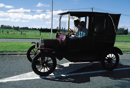 この車はクラシックカーとして出品されたものではありません。ニュージーランドの人たちは物を大切にすることでは有名で、この車も買い物などに使われている現役の車です。私も車に乗って一緒に走りながら撮りました。