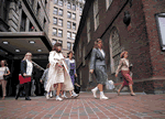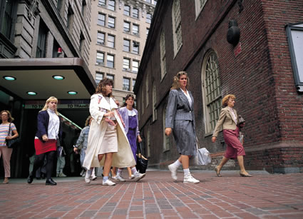 アメリカのボストンです。アメリカの女性たちは出勤するときはスニーカーを履いています。