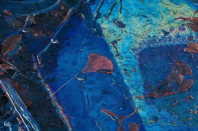 「水は気体・液体・固体と変化していきますが、やはり形の美しさや面白さ、透けて見える木の葉などの色の素晴らしさ、そして朝陽や夕陽の光を受けて輝く神秘性など、氷が一番ドラマティックです」。