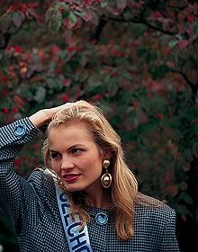 (上)【ミス・インターナショナル】金色のやわらかな髪をかきあげた自然な表情を、ラフな感じで作画してみた。