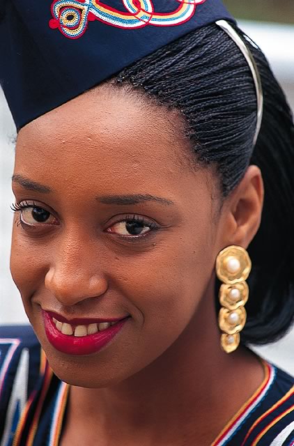 (上)【ミス・セネガル】細く編み上げた髪を表現したくて、思い切り寄ってみた。褐色の肌にパールのイヤリングが印象的だった。