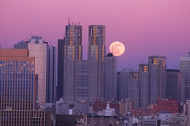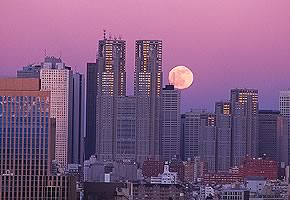 | 大都市昇月 ■カメラ:コンタックスRTSU レンズ:テレテッサ―300mm F4 絞り:f5.6 シャッタースピード:AE(-1/2EV) フィルム:フジクローム(RVP) 撮影地:東京都世田谷区 |