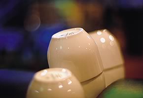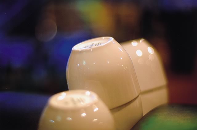 喫茶店のカウンターに座り目の前のカップを撮る、パソコンで処理していたらいい夕方の青い色が出たのでプリントしてみた。