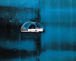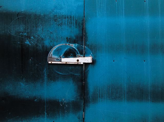 トタンの扉についた金具の擦れ跡が面白いと思ってシャッターを切ったら、RAWモードでは現物以上の色に再現された。