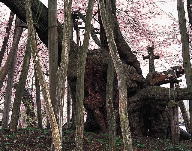 ■カメラ:リンホフマスターテヒニカ4×5 レンズ:フジノンT400mm 絞り:f32 シャッタースピード:1/2秒 フィルム:フジクロームプロビア100F 撮影地:山形県長井市伊佐沢の久保桜 |