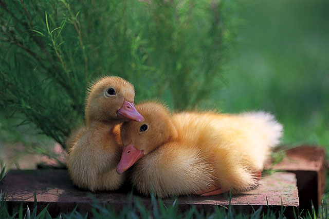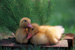 【アヒル】水鳥のせいか、ヒナの時からとても水遊びが好きですが、まだ完全に生え揃っていない羽毛を濡らしすぎると、成長にも影響が出てくるので飼育管理に気をつけます。
