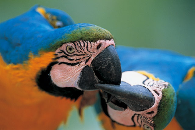 【コンゴーインコ】原色で大型のコンゴーインコは、動物園では囲いのネットも無く、最高の被写体です。
