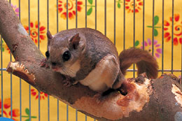 夜行性なので撮影を夜間におこなったり、果物や甘いカステラ等の好物を与え、モモンガの行動に合わせての撮影となります。