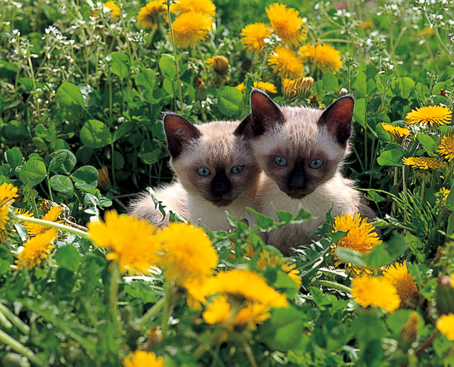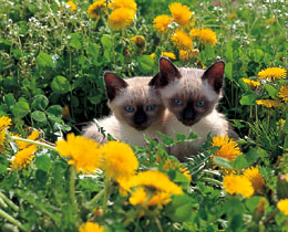 【シャム猫(原産国:タイ)】春の花の時期には、前もって近くの公園等の芝生や花の状況等を下見し、撮影場所を決めてから、飼い主のお宅へ伺うようにしています。